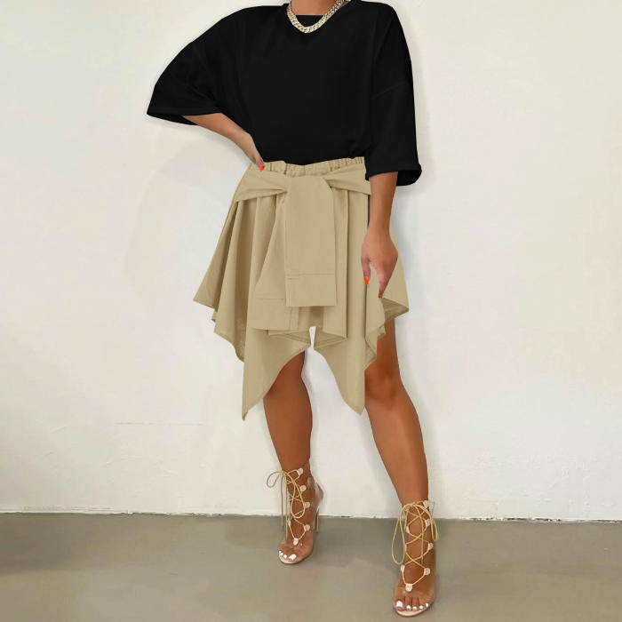 (Only Bottom)(Real Image)2022 Styles Women Fashion INS Styles Solid Color Cotton Irregular SkritsSKU: #CF71001-4