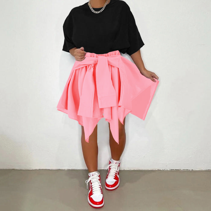 (Only Bottom)(Real Image)2022 Styles Women Fashion INS Styles Solid Color Cotton Irregular SkritsSKU: #CF71001-2