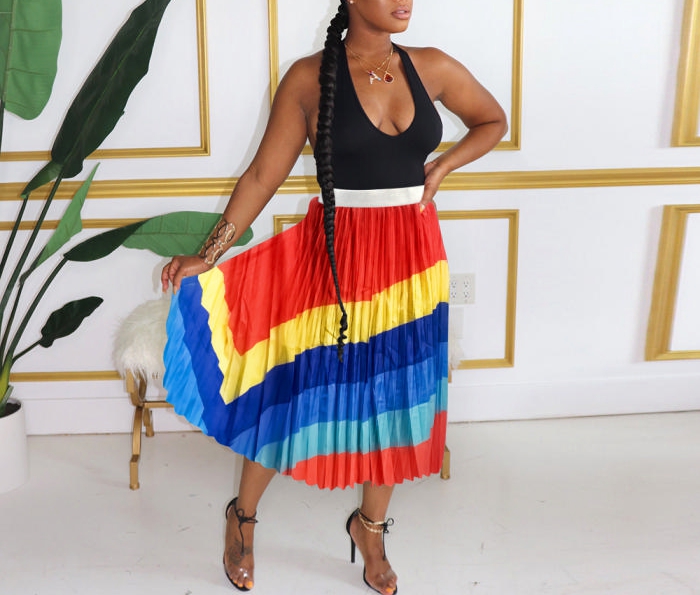 (Only Bottom)(Real Image)2022 Styles Women Fashion Summer TikTok&Instagram Styles Contrast Color SkirtsSKU: #XF14904-1