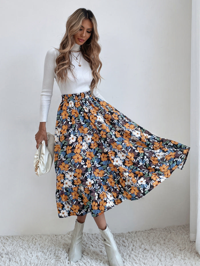 (Only Bottom)(Real Image)2022 Styles Women Sexy INS Styles Floral Bohemian SkirtsSKU: #CF65012-4