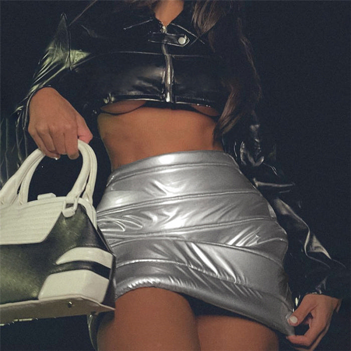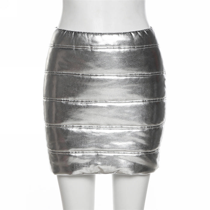 (Only Bottom)(Real Image)2022 Styles Women Sexy Spring&Winter TikTok&Instagram Styles Sliver SkritsSKU: #CF48950-1