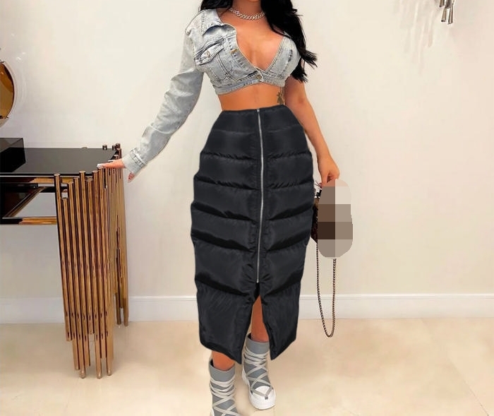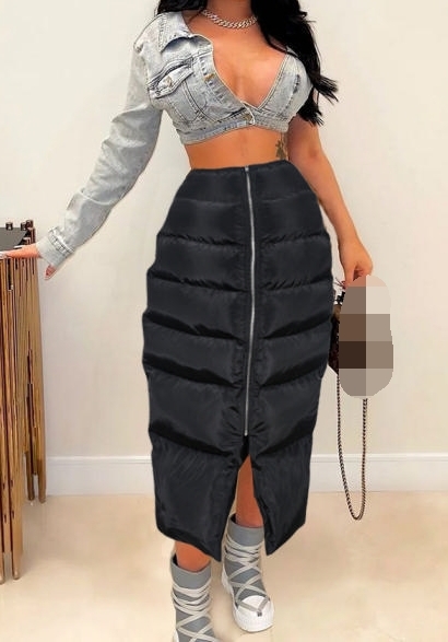 (Only Bottom)(Real Image)2023 Styles Women Sexy&Fashion Autumn/Winter TikTok&Instagram Styles Black Front Zipper SkirtsSKU: #CF59779-1