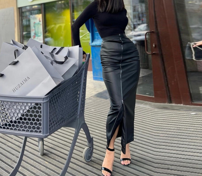 (Only Bottom)(Real Image)2023 Styles Women Sexy&Fashion Autumn/Winter TikTok&Instagram Styles Black Front Zipper SkirtsSKU: #CF59794-1