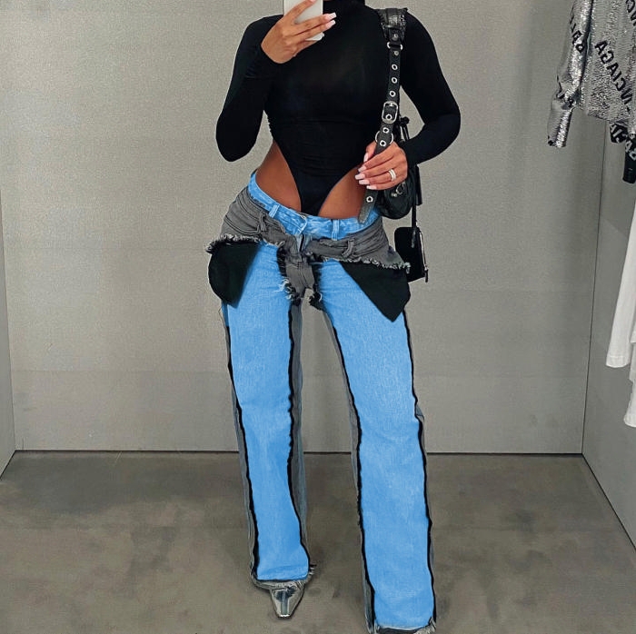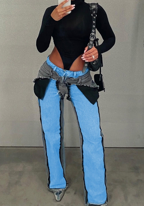 (Only Bottom)(Real Image)2023 Styles Women Sexy&Fashion Autumn/Winter TikTok&Instagram Styles Contrast Color Jeans Long PantsSKU: #XF79006-1