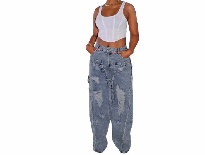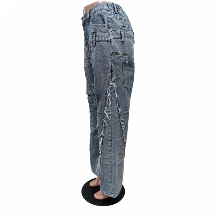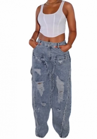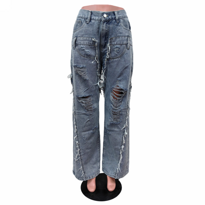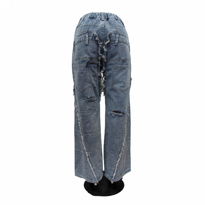 (Only Bottom)(Real Image)2023 Styles Women Sexy&Fashion Autumn/Winter TikTok&Instagram Styles Ripped Jeans Long PantsSKU: #XF79029-1