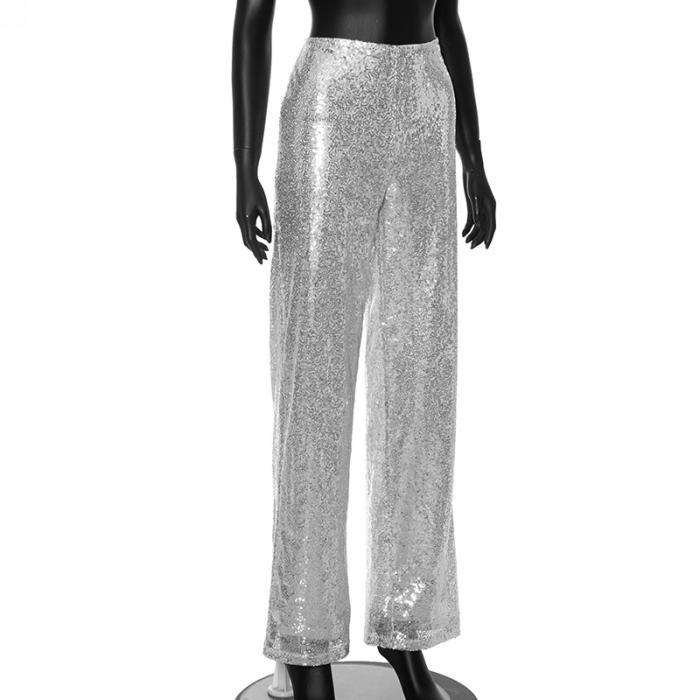 (Only Bottom)(Real Image)2023 Styles Women Sexy&Fashion Autumn/Winter TikTok&Instagram Styles Sequins Long PantsSKU: #CF47823-1