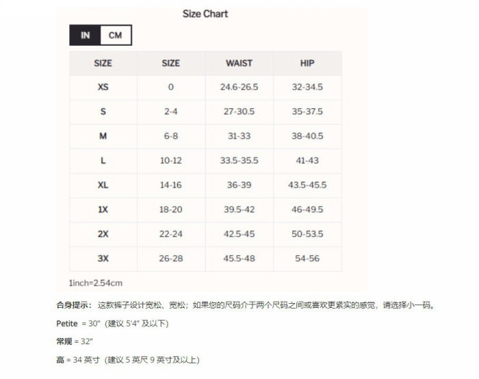 | Size | Bust | Waist | Hips |