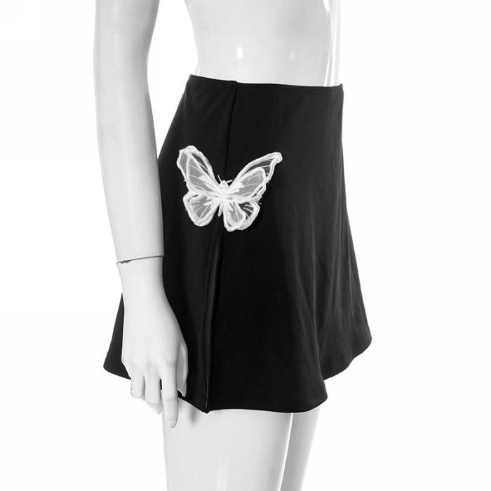 (Only Bottom)(Real Image)2023 Styles Women Sexy&Fashion Spring&Summer TikTok&Instagram Styles Black BufferFly SkirtsSKU: #CF76125-1