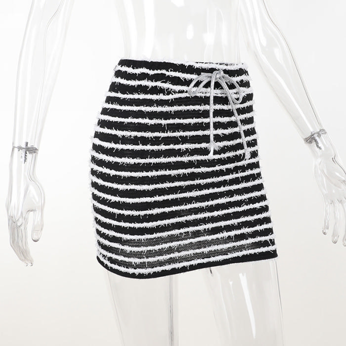 (Only Bottom)(Real Image)2023 Styles Women Sexy&Fashion Spring&Summer TikTok&Instagram Styles Black&White SkirtsSKU: #XF92754-1