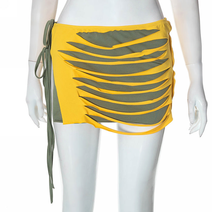(Only Bottom)(Real Image)2023 Styles Women Sexy&Fashion Spring&Summer TikTok&Instagram Styles Contrast Color Ripped SkirtsSKU: #CF68276-1