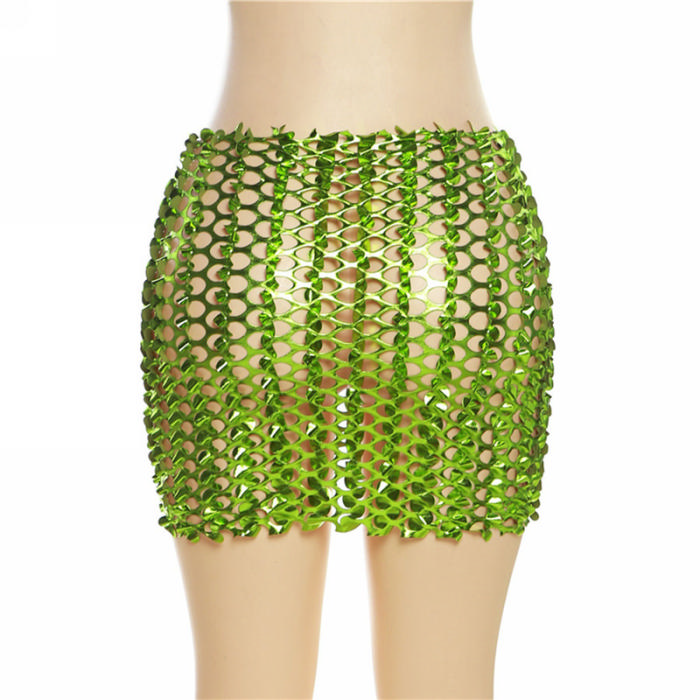 (Only Bottom)(Real Image)2023 Styles Women Sexy&Fashion Spring&Summer TikTok&Instagram Styles Green Hollow SkirtsSKU: #CF83010-1