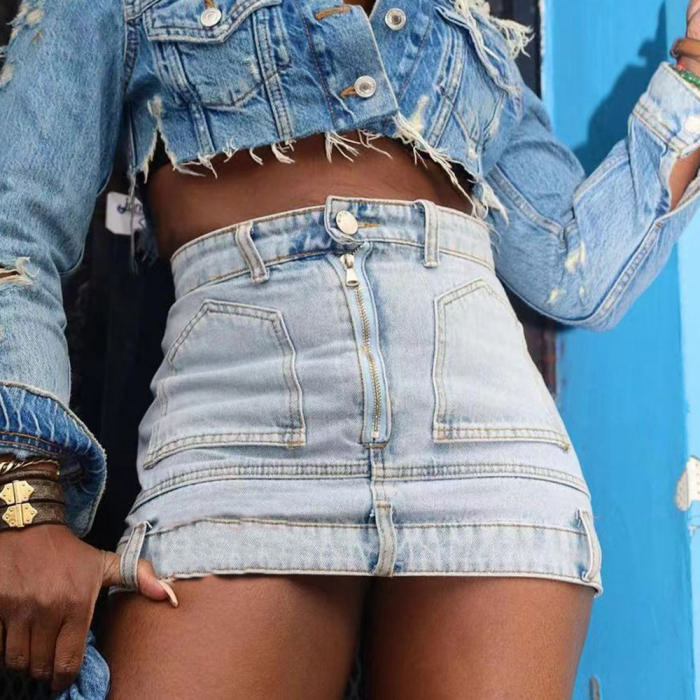 (Only Bottom)(Real Image)2023 Styles Women Sexy&Fashion Spring&Summer TikTok&Instagram Styles Jeans SkirtsSKU: #CF59574-1