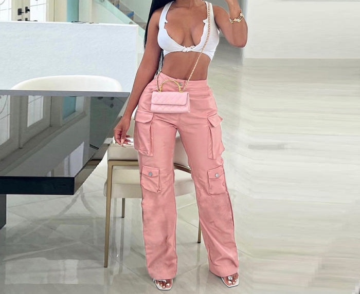 (Only Bottom)(Real Image)2023 Styles Women Sexy&Fashion Spring&Summer TikTok&Instagram Styles Pink Long PantsSKU: #CF77358-1