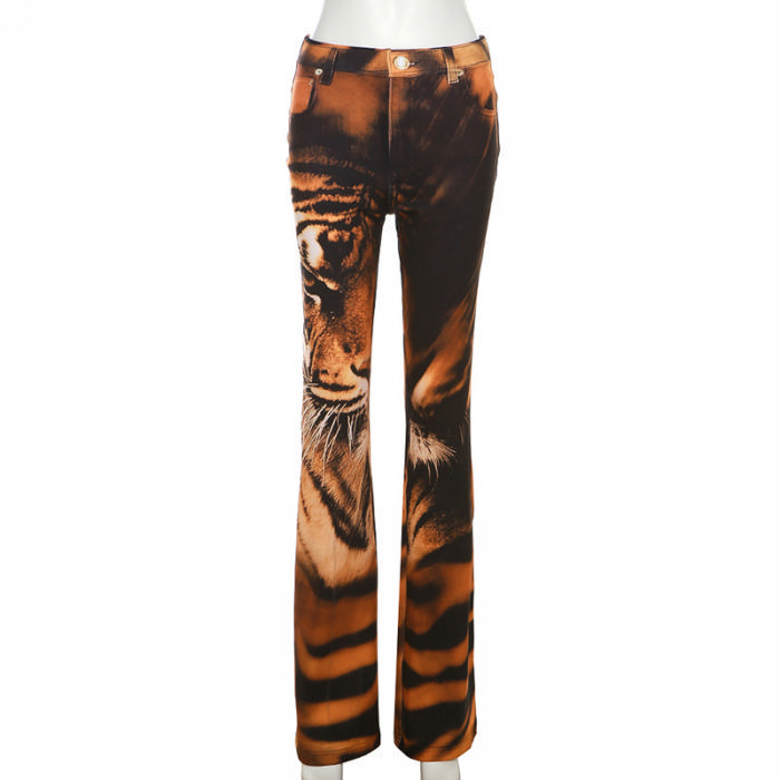(Only Bottom)(Real Image)2023 Styles Women Sexy&Fashion Spring&Summer TikTok&Instagram Styles Print Tiger Long PantsSKU: #CF77388-1