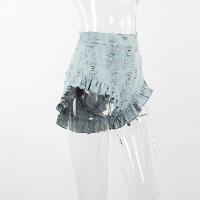 (Only Bottom)(Real Image)2023 Styles Women Sexy&Fashion Spring&Summer TikTok&Instagram Styles Ripped Short PantsSKU: #XF92757-1