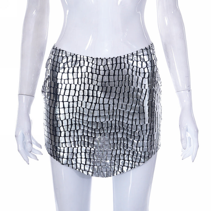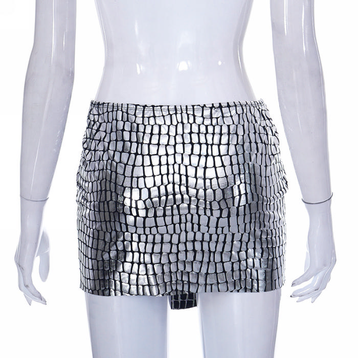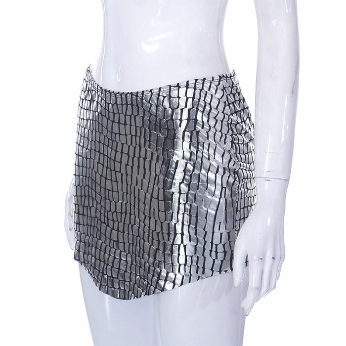 (Only Bottom)(Real Image)2023 Styles Women Sexy&Fashion Spring&Summer TikTok&Instagram Styles Silver SkirtsSKU: #CF47477-1