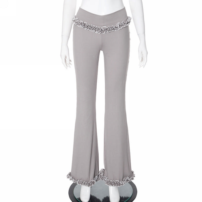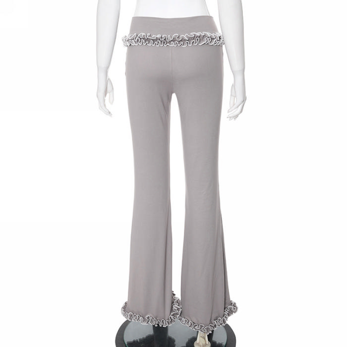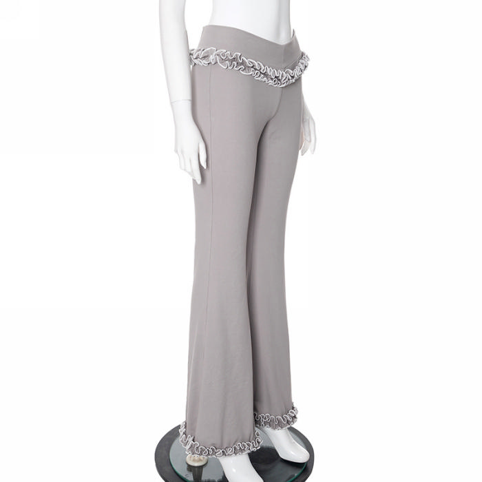 (Only Bottom,Real Image)2024 Styles Women Ruffle Trim Solid Color Low-Waist Crop PantsSKU: #CF76162-1