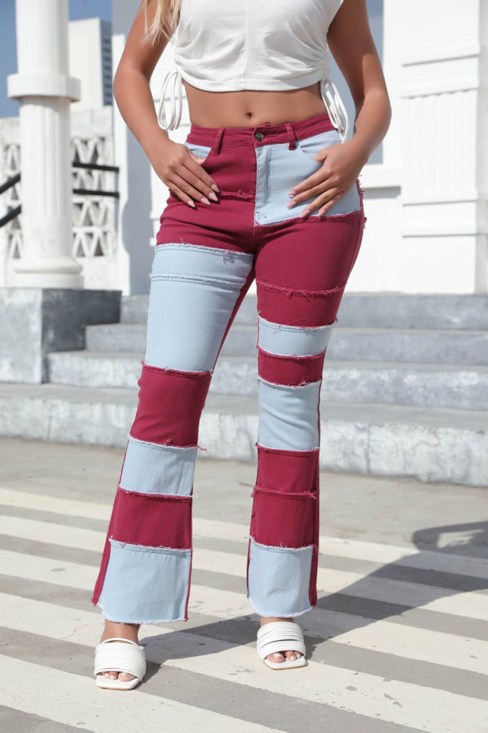 (Only Bottom)(Real Image)2024 Styles Women Sexy&Fashion Sprint/Summer TikTok&Instagram Styles Contrast Color Jeans Long PantsSKU: #XF03062-3
