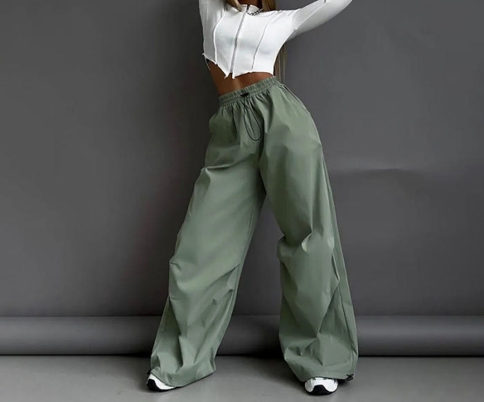 (Only Bottom,Real Image)2024 Styles Women Spring Fashion High-Waist Vintage Street Style Straight-Leg Utility Pants, Long Casual PantsSKU: #XF92863-1