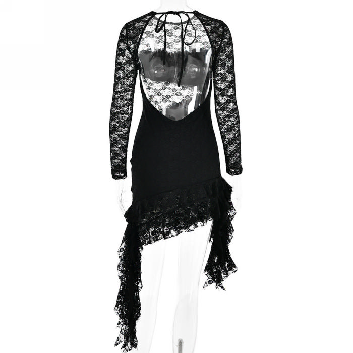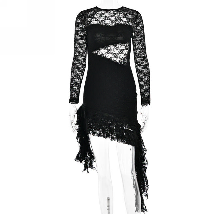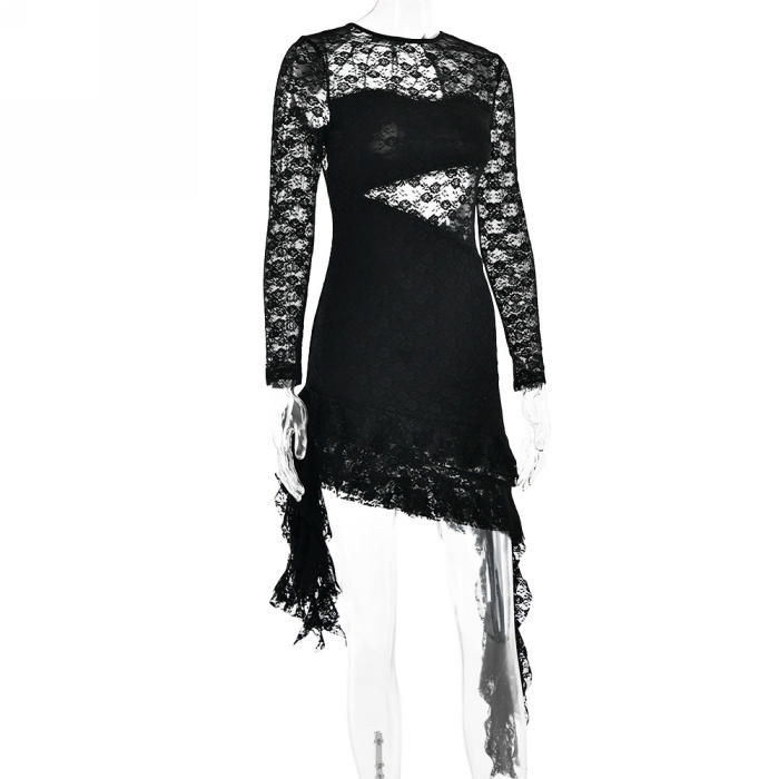 (Only Dress,Not Stocking)(Real Image)2023 Styles Women Sexy&Fashion Autumn/Winter TikTok&Instagram Styles Lace Irregular Long Sleeve Mini DressSKU: #XF62643-1
