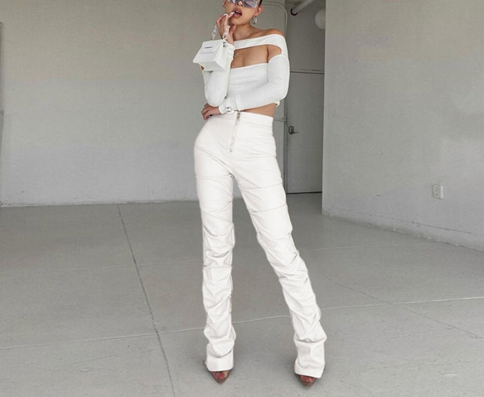 (Only Long Pants)2022 Styles Women Fashion Spring INS Styles PU Long PantsSKU: #CF12260-2