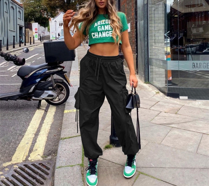 (Only Long Pants)(Black)2022 Styles Women Fashion Summer TikTok&Instagram Styles Loose OL Long PantsSKU: #CF77073-2