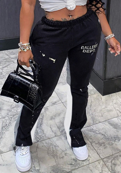 (Only Long Pants)(Black)2022 Styles Women Fashion Summer TikTok&Instagram Styles Print Loose Long PantsSKU: #CF77052-4