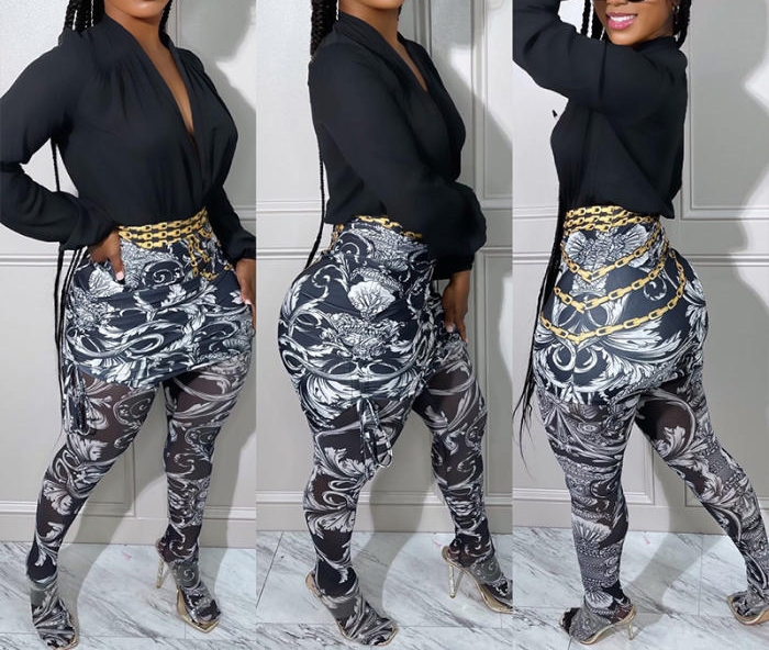(Only Long Pants)(Black)2023 Styles Women Sexy&Fashion Spring&Summer TikTok&Instagram Styles Print Long PantsSKU: #CF47434-2