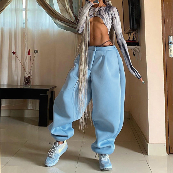 (Only Long Pants)(Blue)2022 Styles Women Fashion Summer TikTok&Instagram Styles Loose Long PantsSKU: #XF92632-2