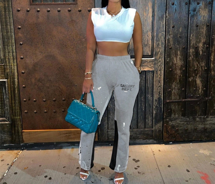 (Only Long Pants)(Gray)2022 Styles Women Fashion Summer TikTok&Instagram Styles Print Loose Long PantsSKU: #CF77052-2