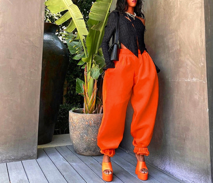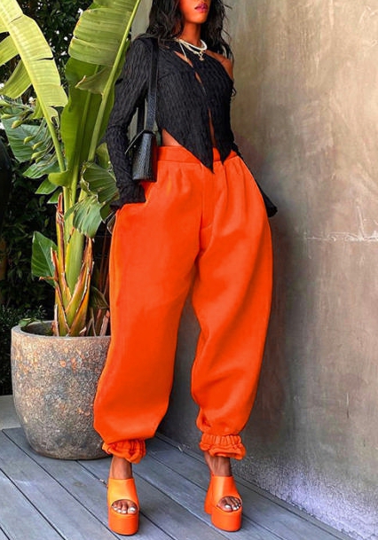 (Only Long Pants)(Orange)2022 Styles Women Fashion Summer TikTok&Instagram Styles Loose Long PantsSKU: #XF92632-4