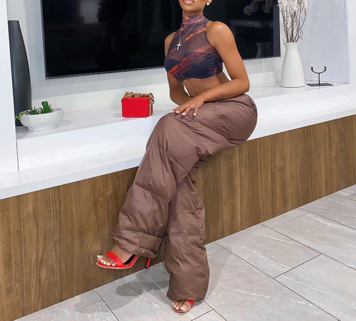 (Only Long Pants)(Real Image)2022 Styles Women Fashion INS Styles Coffee Long PantsSKU: #CF59165-1