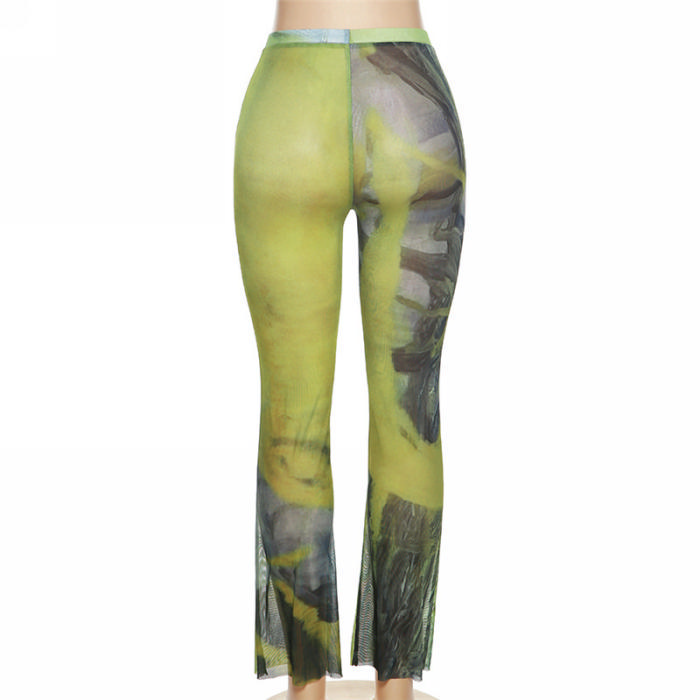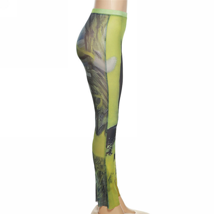 (Only Long Pants)(Real Image)2022 Styles Women Fashion INS Styles Green Print Long PantsSKU: #CF49842-1