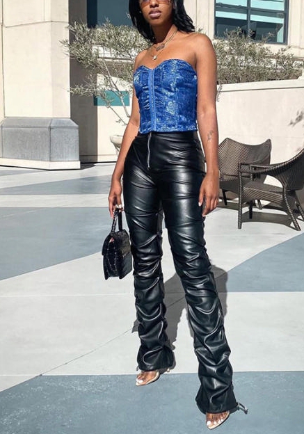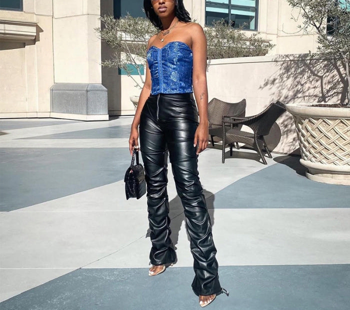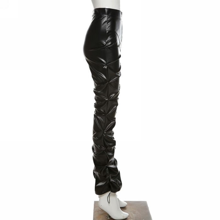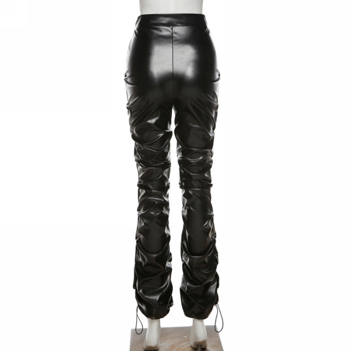 (Only Long Pants)(Real Image)2022 Styles Women Fashion Spring INS Styles PU Long PantsSKU: #CF12260-1