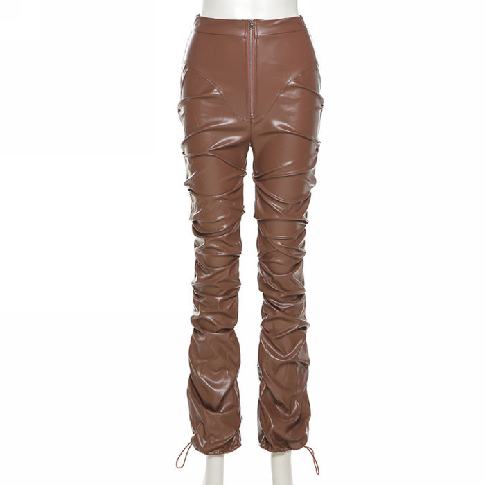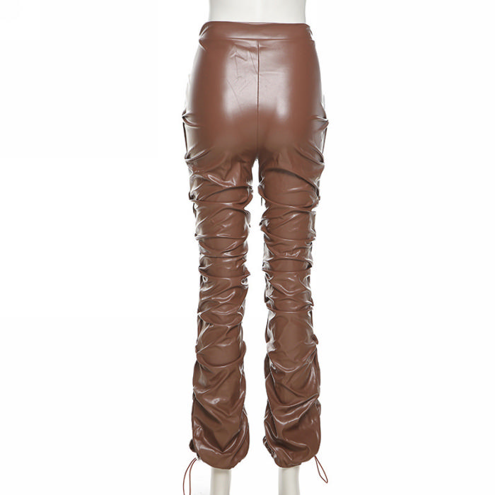 (Only Long Pants)(Real Image)2022 Styles Women Fashion Spring INS Styles PU Long PantsSKU: #CF12260-4
