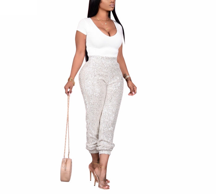 (Only Long Pants)(Real Image)2022 Styles Women Fashion Spring INS Styles Sequins Long PantsSKU: #OEM5314-4