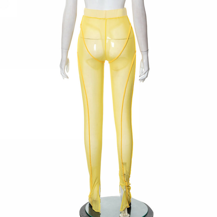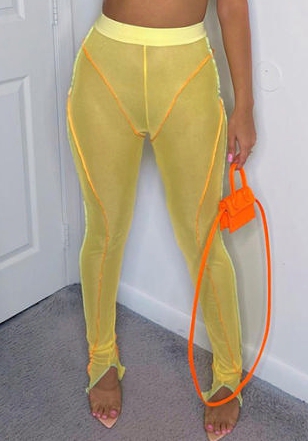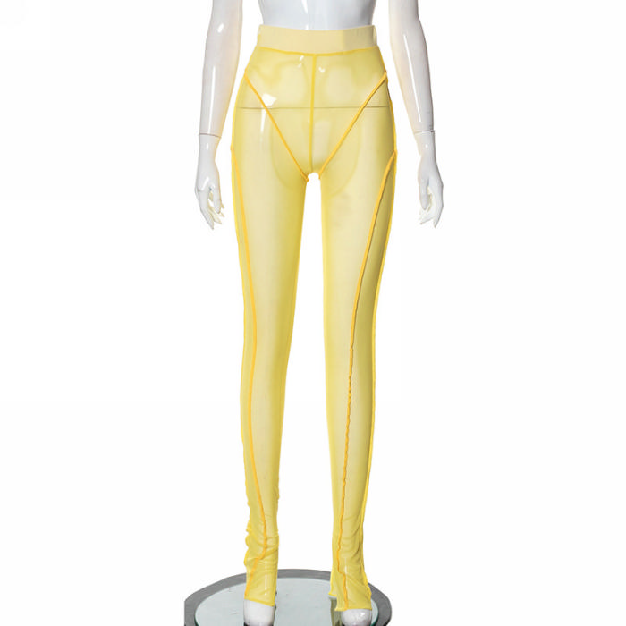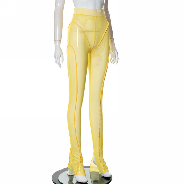 (Only Long Pants)(Real Image)2022 Styles Women Fashion Summer TikTok&Instagram Styles Mesh Yellow Long PantsSKU: #CF47238-1