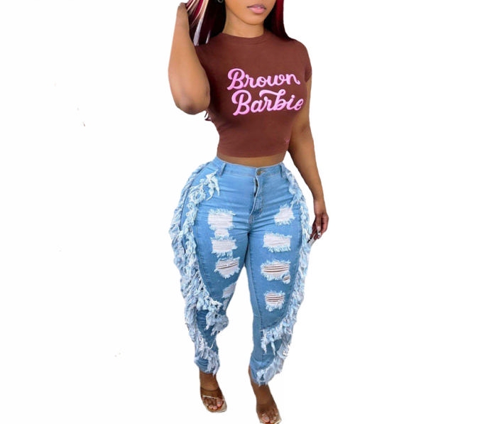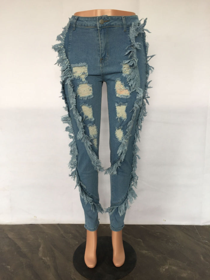 (Only Long Pants)(Real Image)2023 Styles Women Sexy&Fashion Spring&Summer TikTok&Instagram Styles Ripped Jeans Long PantsSKU: #CF33001-1