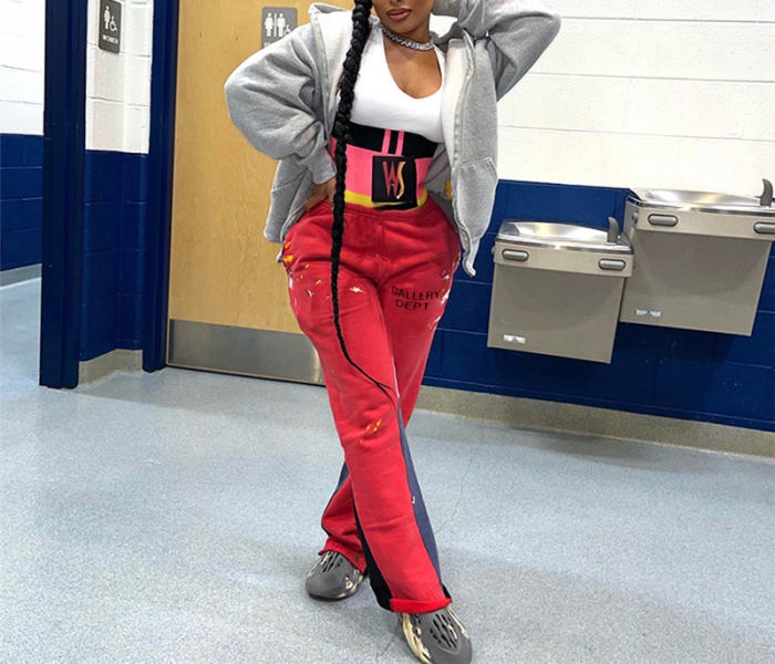 (Only Long Pants)(Red)2022 Styles Women Fashion Summer TikTok&Instagram Styles Print Loose Long PantsSKU: #CF77052-3