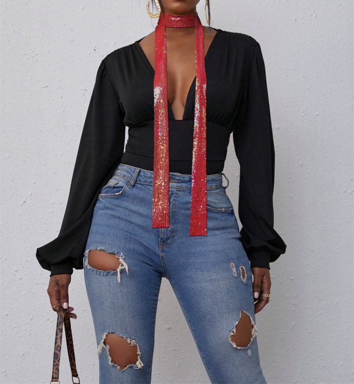 (Only Scarf)(Colorful&Red)2023 Styles Women Sexy&Fashion Autumn/Winter TikTok&Instagram Styles Sequins ScarfSKU: #CF90008-8