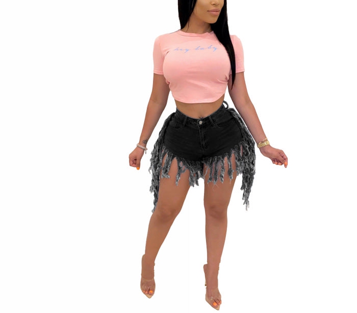 (Only Short Pants)2022 Styles Women Fashion INS Styles Jeans Tassel Short PantsSKU: #XF21731-1