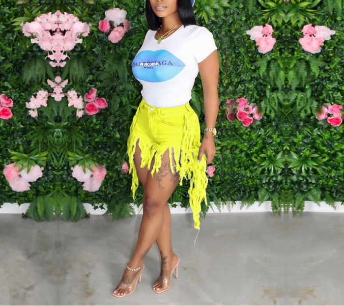 (Only Short Pants)2022 Styles Women Fashion INS Styles Jeans Tassel Short PantsSKU: #XF21731-6