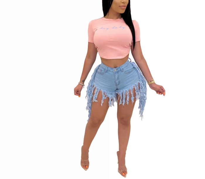 (Only Short Pants)2022 Styles Women Fashion INS Styles Jeans Tassel Short PantsSKU: #XF21731-3