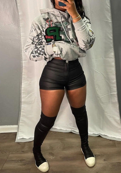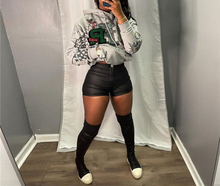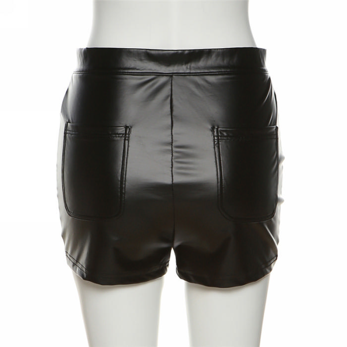 (Only Short Pants)(Real Image)2022 Styles Women Fashion INS Styles Black PU Short PantsSKU: #CF49702-1