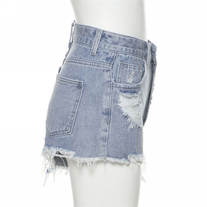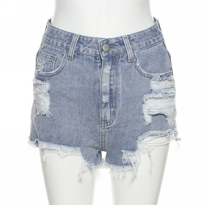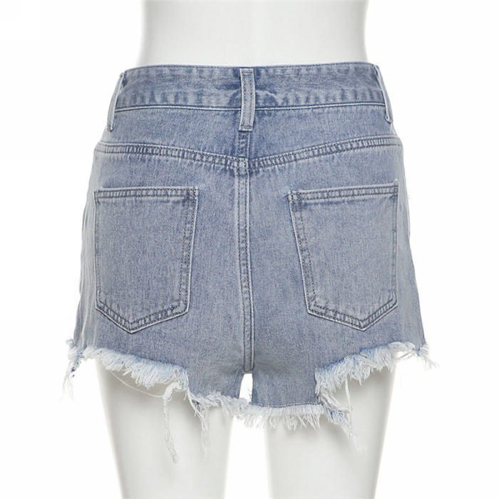 (Only Short Pants)(Real Image)2022 Styles Women Fashion INS Styles Ripped Short PantsSKU: #CF49640-3