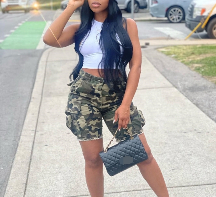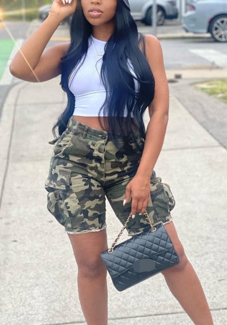 (Only Short Pants)(Real Image)2022 Styles Women Fashion Summer TikTok&Instagram Styles Camouflage Short PantsSKU: #CF59235-1
