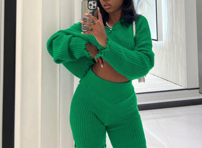 (Only Short Pants)(Real Image)2022 Styles Women Fashion Summer TikTok&Instagram Styles Sweater Short PantsSKU: #CF77027-1