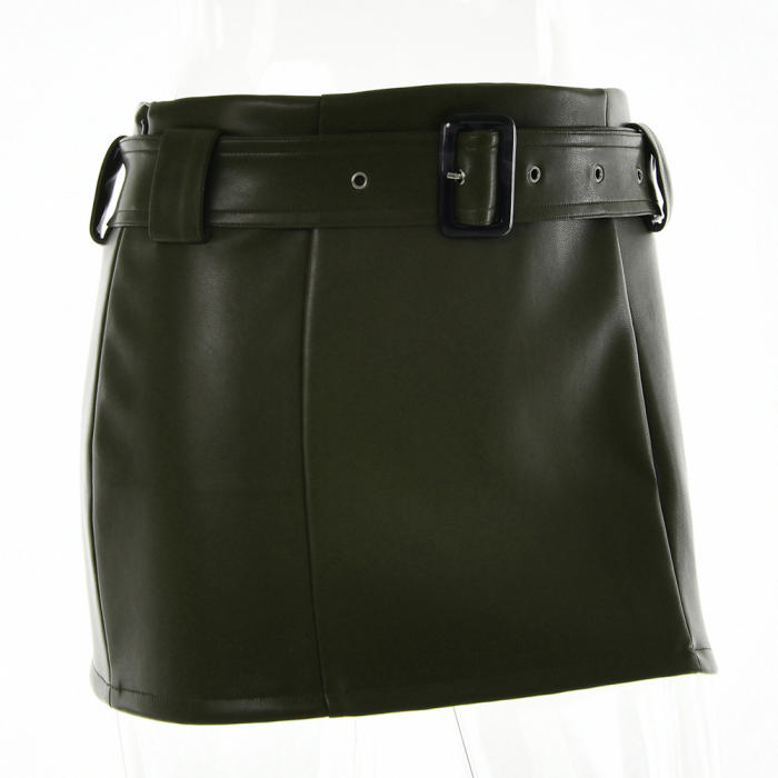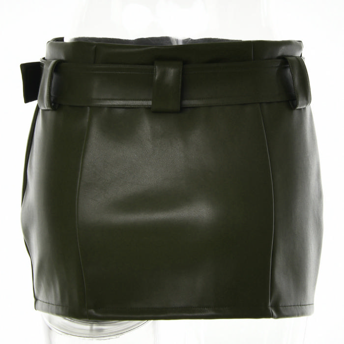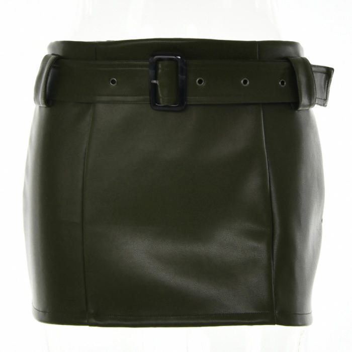 (Only Skirts)(Real Image)2022 Styles Women Fashion Spring&Winter TikTok&Instagram Styles Green PU SkirtsSKU: #XF62589-1