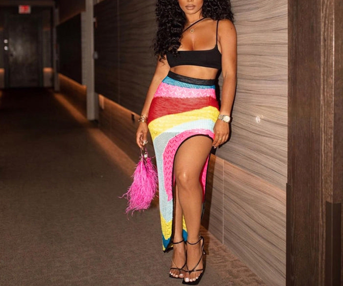 (Only Skirts)(Real Image)2022 Styles Women Fashion Summer TikTok&Instagram Styles Contrast Color Sweater SkirtsSKU: #CF77050-1