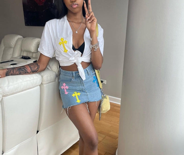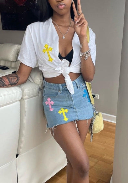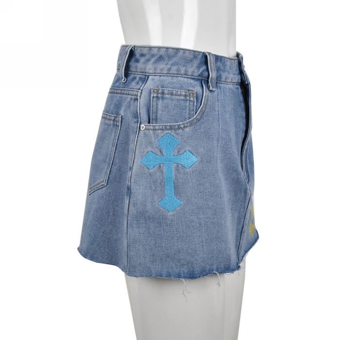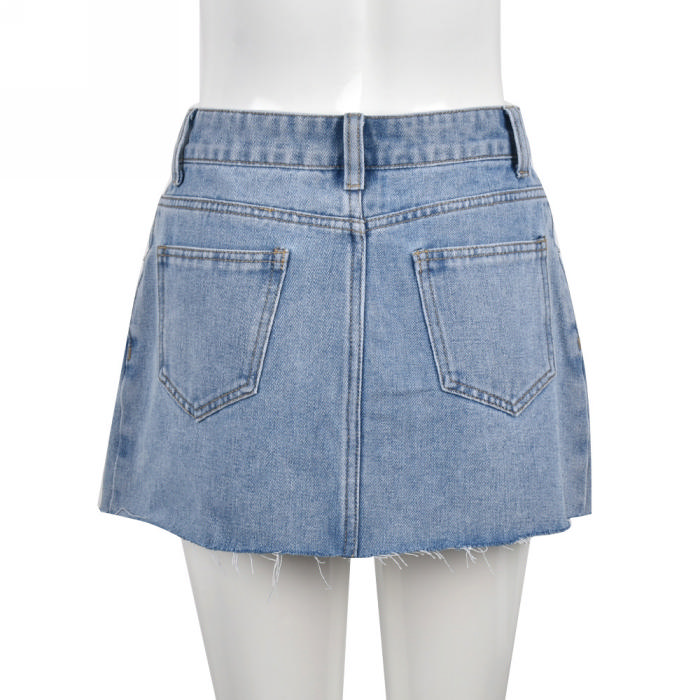 (Only Skirts)(Real Image)2022 Styles Women Fashion Summer TikTok&Instagram Styles Ripped Jeans SkirtsSKU: #CF59244-1